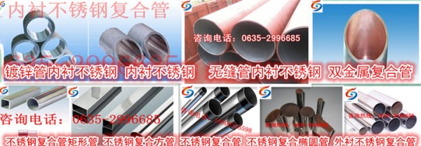 新疆不銹鋼復(fù)合管、新疆內(nèi)襯不銹鋼復(fù)合管、新疆雙金屬復(fù)合管-內(nèi)襯不銹鋼復(fù)合管是以普通碳素鋼為基材,以薄壁不銹鋼為內(nèi)襯,利用一項(xiàng)新技術(shù):螺旋溫滾復(fù)合技術(shù),從而使基管與襯管得到緊密結(jié)合,使復(fù)合管呈現(xiàn)最佳的狀態(tài)。由于內(nèi)襯不銹鋼復(fù)合管的良好性能使其廣泛應(yīng)用于石油、化工、消防、能源與環(huán)保、化肥與造紙、市政建設(shè)等行業(yè)。專家認(rèn)為這是純不銹鋼管,銅管的代替產(chǎn)品。